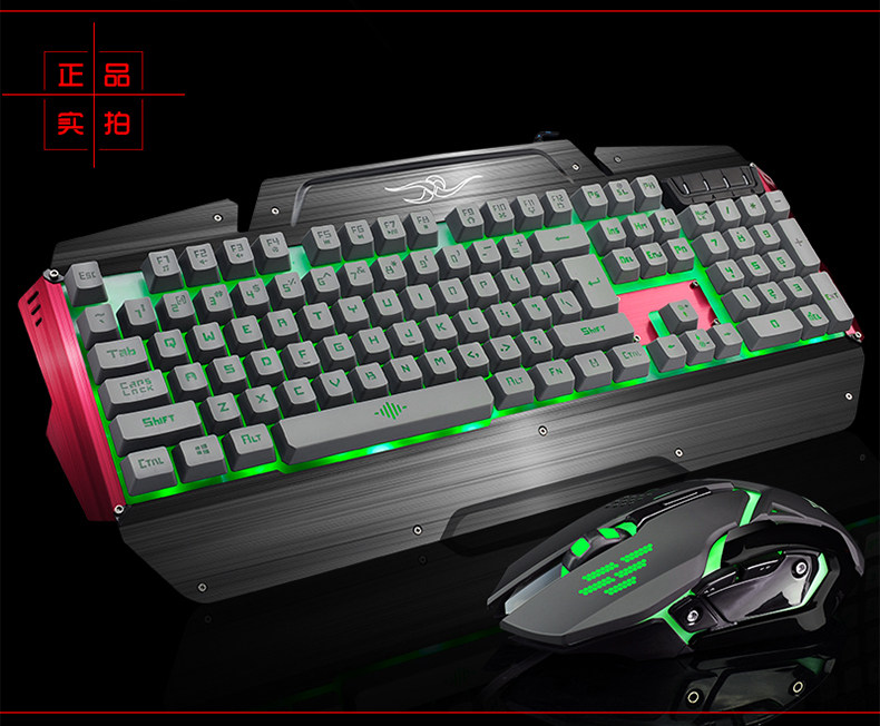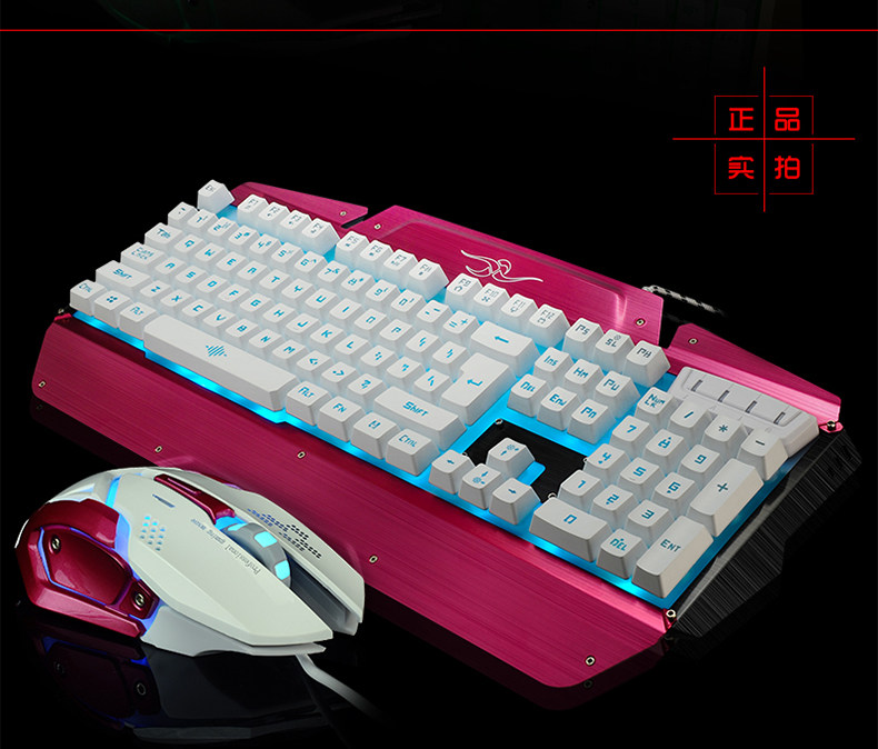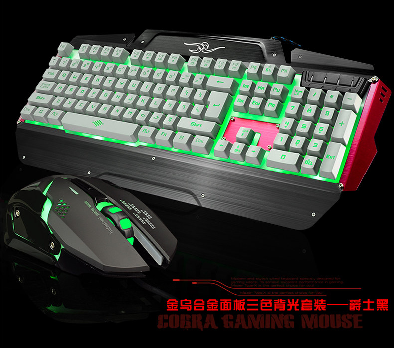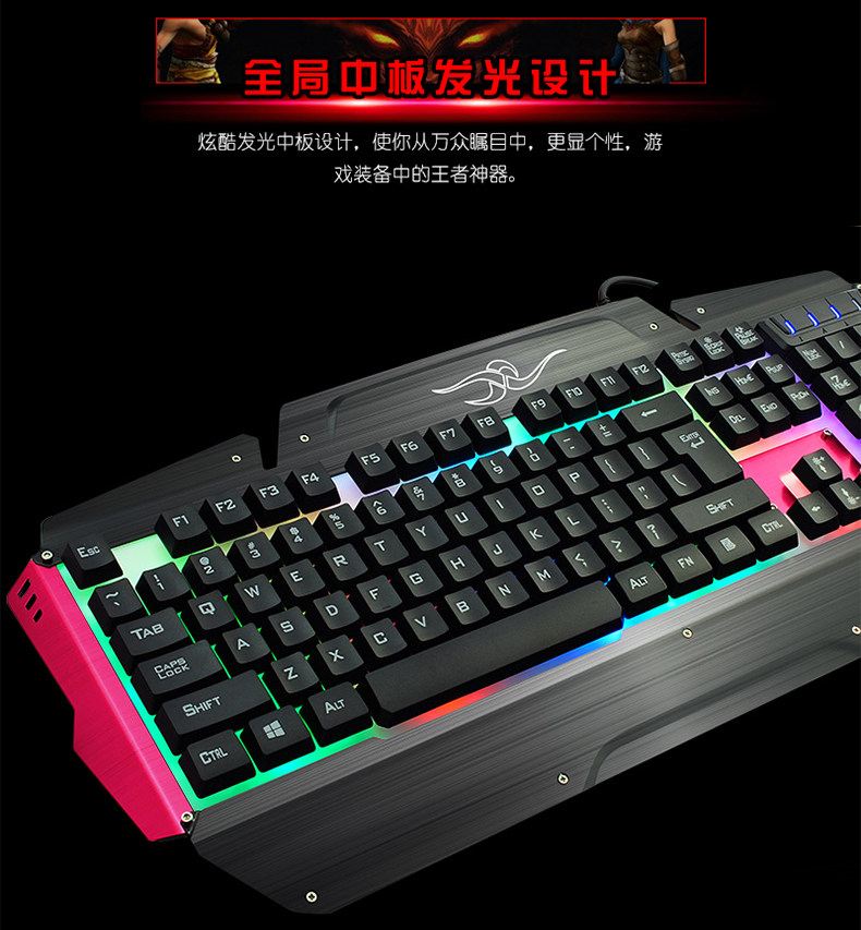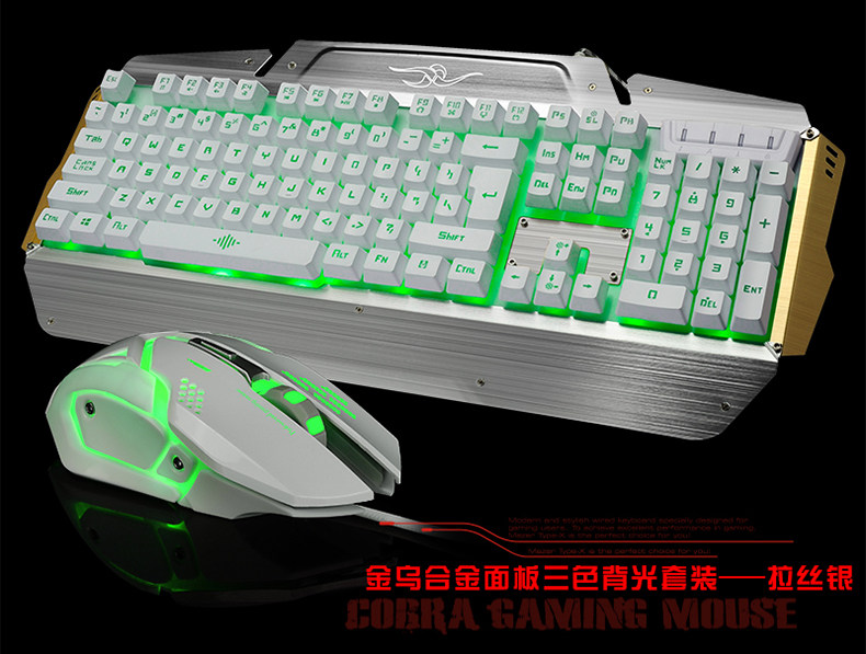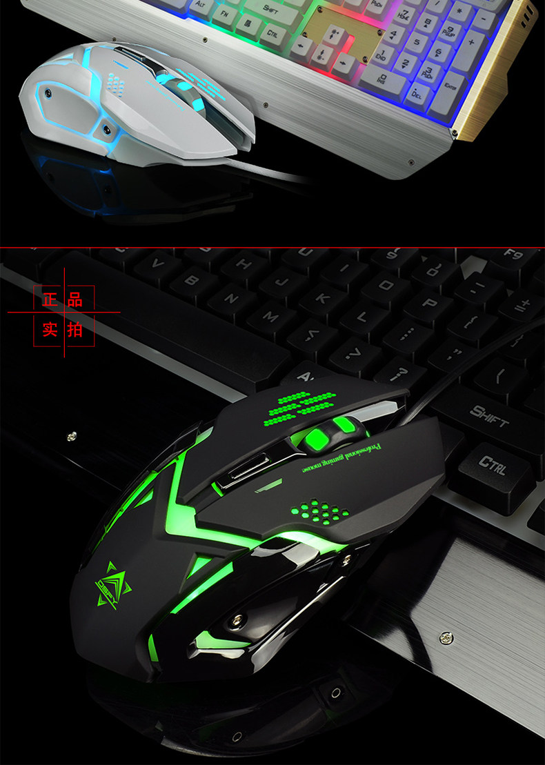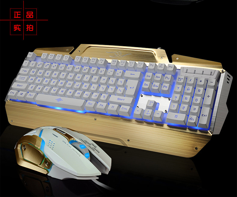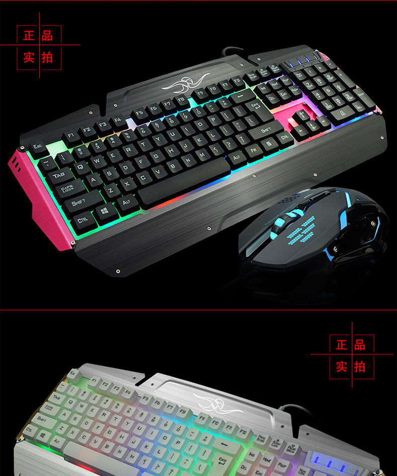 如意鸟 机械手感 USB台式电脑金属发光背光有线游戏键盘鼠标套装
