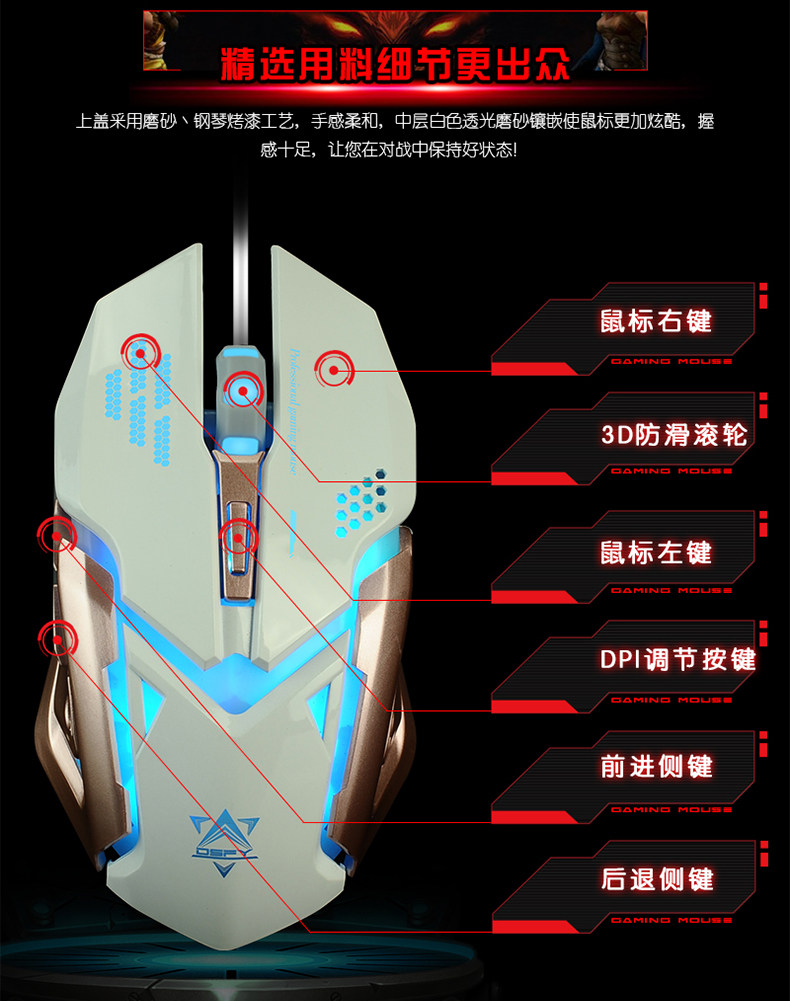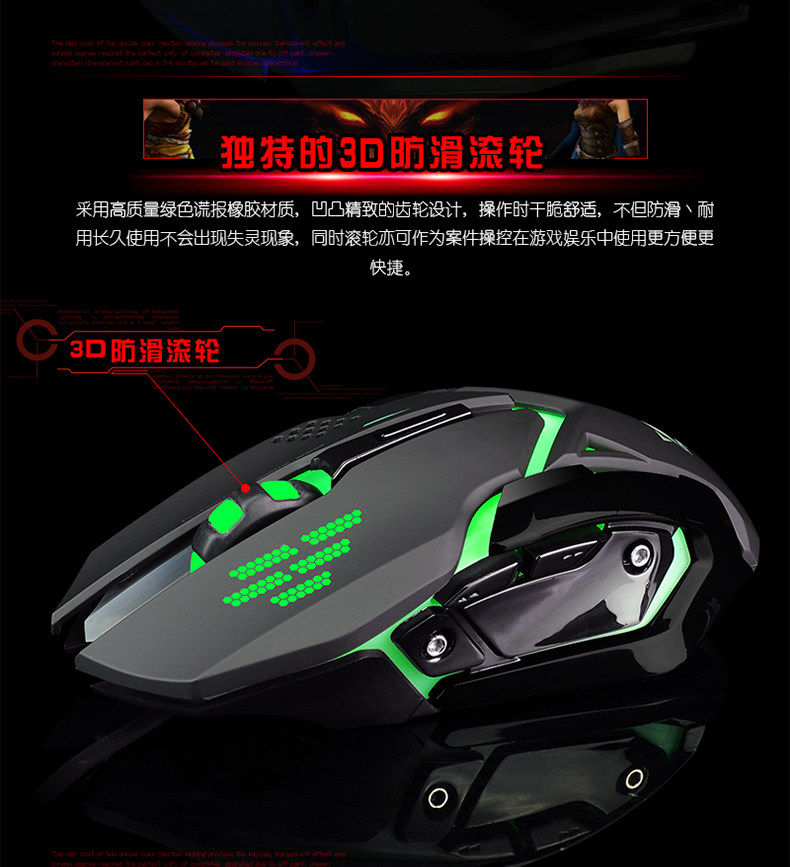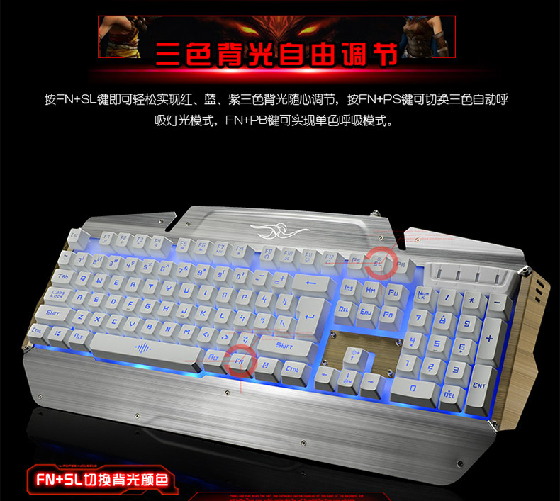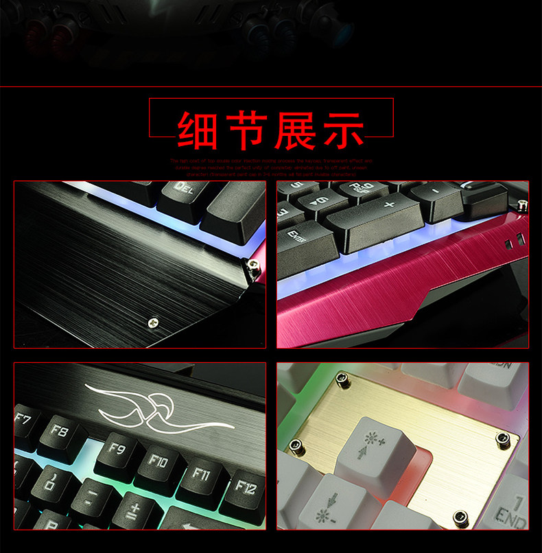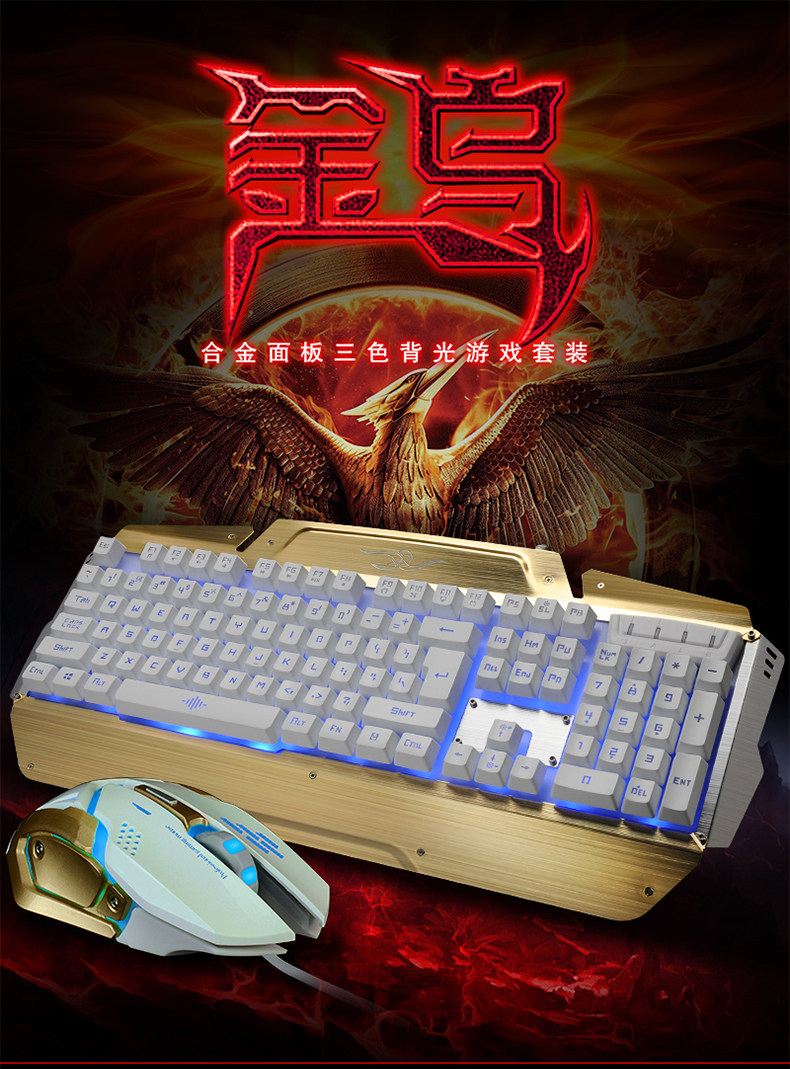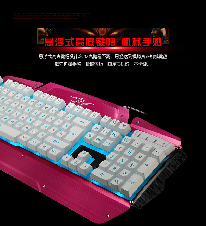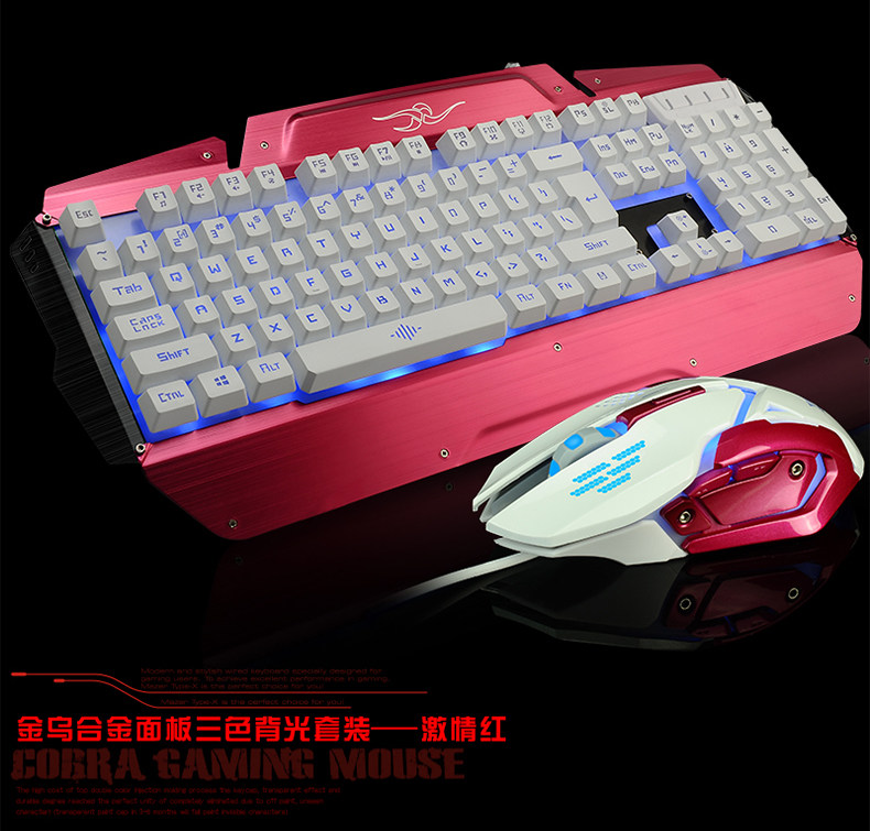 如意鸟 机械手感 USB台式电脑金属发光背光有线游戏键盘鼠标套装