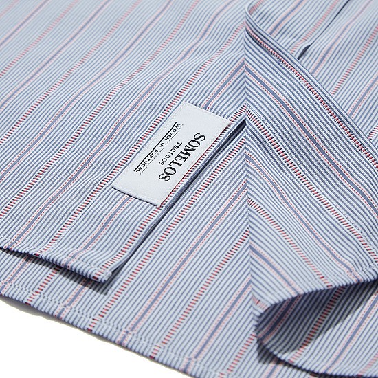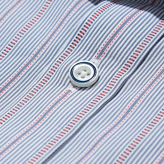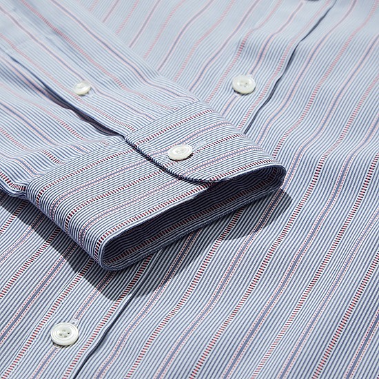 - 컬러감이 돋보이는 스티치풍의 스트라이프를 적용한 남성 셔츠.