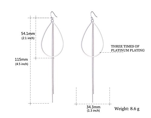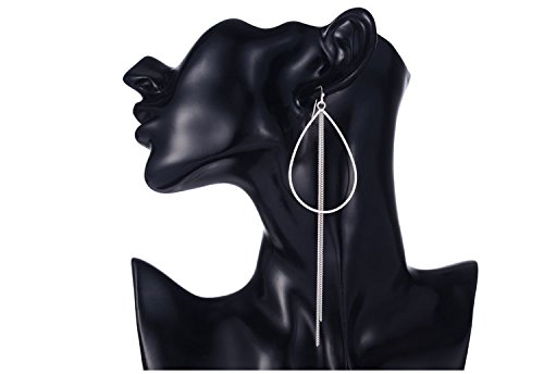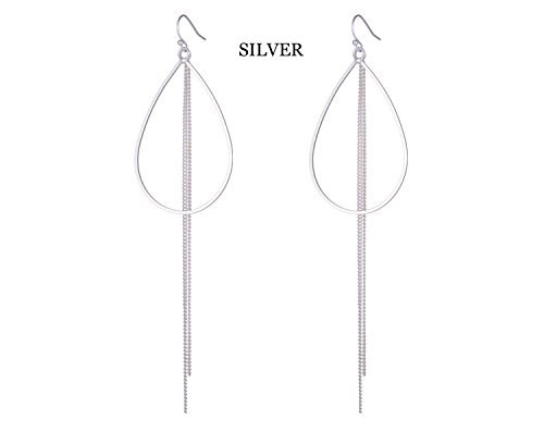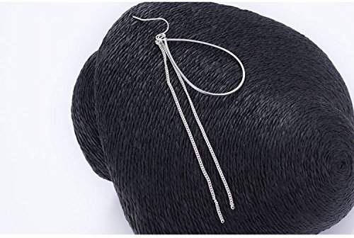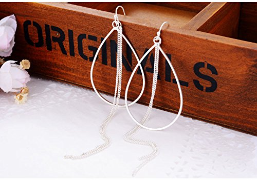 - Title : Girl Era Elegant Lady Teardrop Shape Long Tassels Silver Hoop Earrings