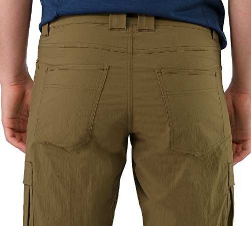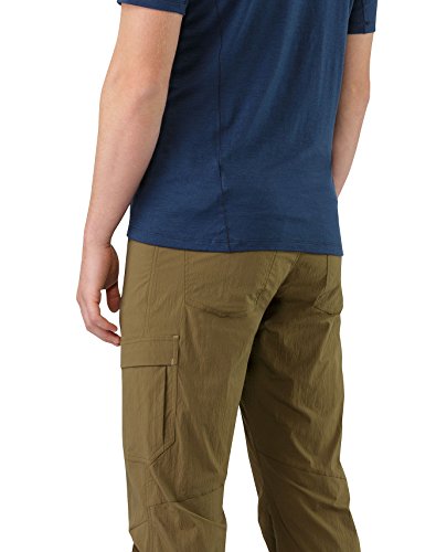 Product Description 209116 Features: Hot weather and humidity won't get to you with summer weight TerraTex fabric to breathable, light, and quick drying Climb or hike at ease with a technical design featuring articulated knees, seat, front and back leg seams, and a gusseted crotch Built for the male form, this pant will fit well with a close, athletic fit Stow your pocket knife or keys in the two pleated cargo pockets with fixed flaps, two front slash pockets, or in the two rear pockets with fixed flaps Stay comfortable around the waistline with a waistband sporting a front fly with two snaps and belt loops Show off your trend setting style with the embroidered bird logo Specifications: Fabric: 94% nylon to 6% Lycra Inseam: 35 inches 0