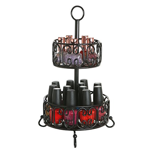 - Feature : Bring style and beauty to your space by adding this cosmetics stand with beautiful scrollwork to your home or salon. / Designed to look like a fountain with the bottom round tier being slightly bigger than the top, there's plenty of room to display nail polish bottles, aromatherapy and essential oils or other cosmetic items. The rack is also a space saving jewelry storage solution, or use to store any of your other odds-n-ends. / This salon inspired organizer is not only beautifully designed but durable for home and professional salon use. / **Official MyGift® product, includes our signature satin jewelry pouch.** Nail polish bottles not included. / Approximate Dimensions: 12.2" H x 6.9" L x 6.9" W.