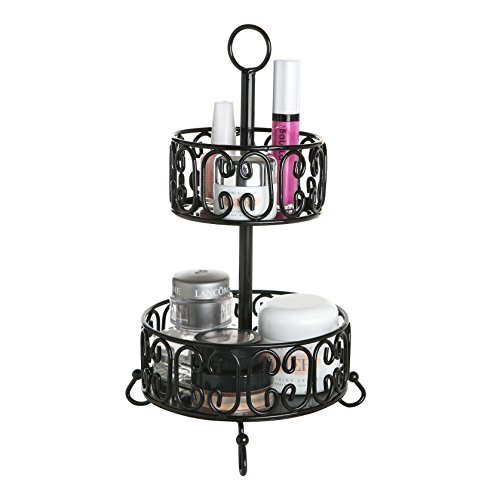 - Title : Black Metal 2 Tier Round Scrollwork Cosmetic Organizer Stand / Ring Dish / Nail Polish Display Rack