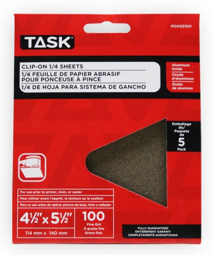 Task Tools POX55100 4-1/2-Inch by 5-1/2-Inch Clip-On 1/4-Sheet Sandpaper, 100 Grit, 5-Pack