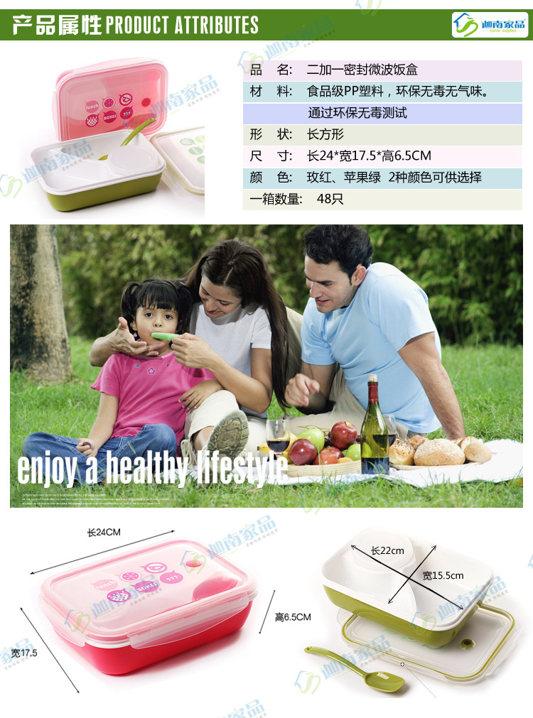 两格饭盒带汤碗微波加热日式分多格便当盒二格密封餐盒餐具买1送3