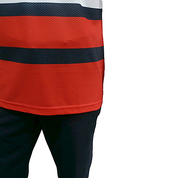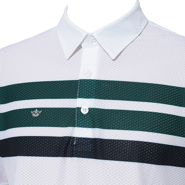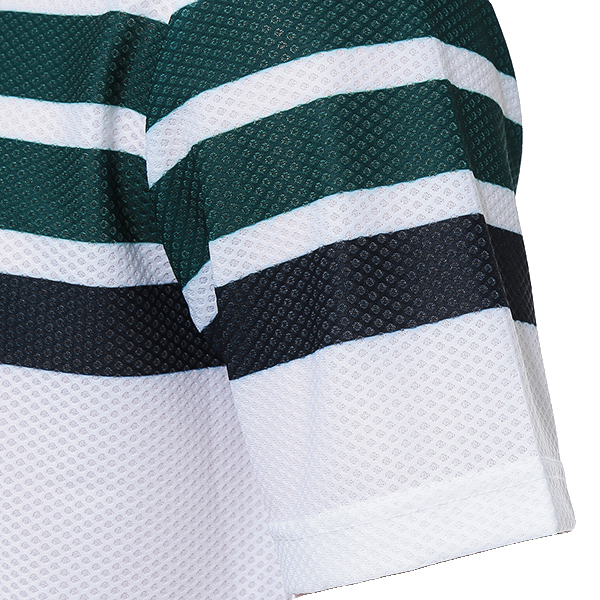 벌집 모양 메쉬원단을 사용해 통기성이 좋고 가볍게 착용할수 있는 제품 스포티한 댕강 패턴물로 젊은 느낌의 코디가 용이한 스타일