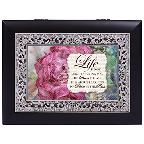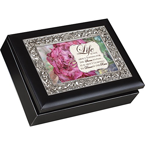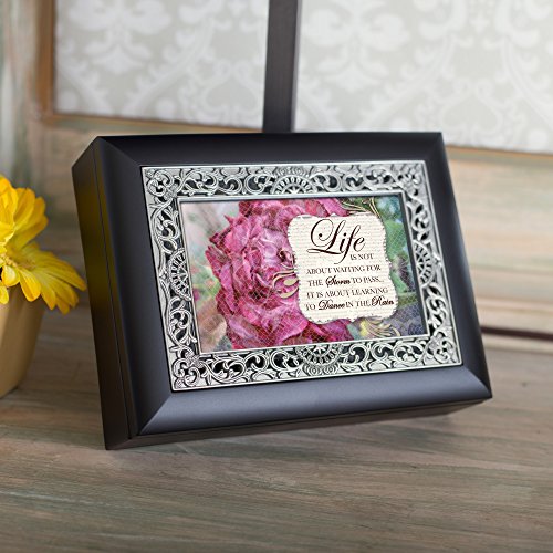 Life Is Not About Waiting Black Ornate Silver Tone Inlay Jewelry Keepsake Box