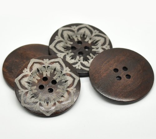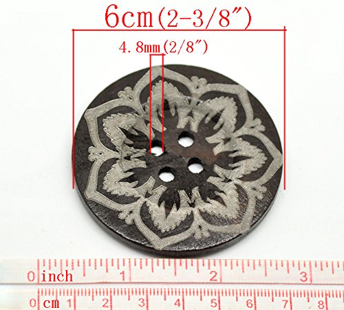 PEPPERLONELY Brand 10PC Dark Brown Large 4 Hole Scrapbooking Sewing Wood Buttons 60mm(2-3/8 Inch)