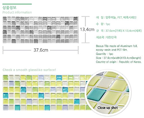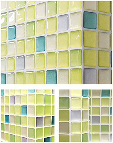 Beaustile Fresh Green Mosaic 3D Wall Stickers 2 Sheets Backsplash Wallpaper Home Decor Fire Retardant Bathroom Kitchen DIY