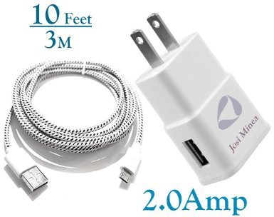 -. Title : Josi Minea® 10ft / 3M Fabric Braided Premium High Quality Nylon Micro USB Charger 2.0-Amp for Samsung Galaxy S6 / S6 Edge / S5 / S4 / S3 / S2 , Samsung Galaxy Note / Note 2 / 3 / 4, Galaxy Tab, Google Nexus 7 / 10, Nokia Lumia, and Most Android Tablets / Android Phones / Windows Phones - New Style Micro USB Connector - 10 Feet / 3 Meter