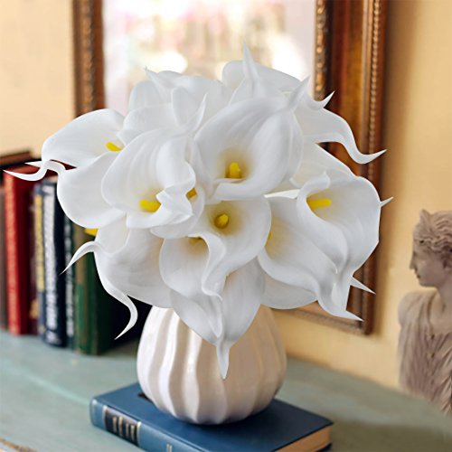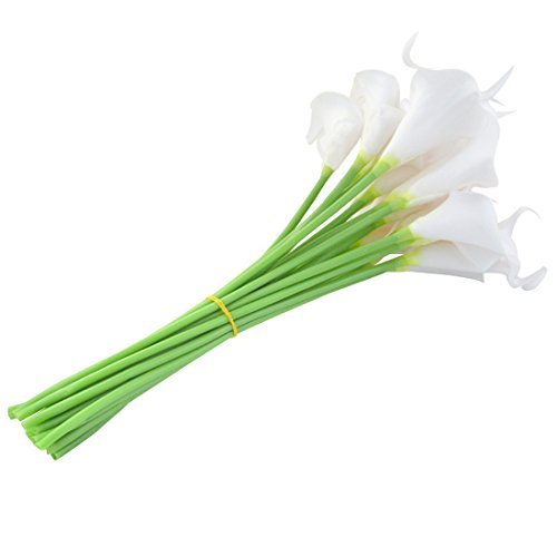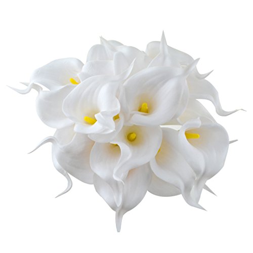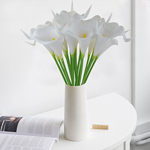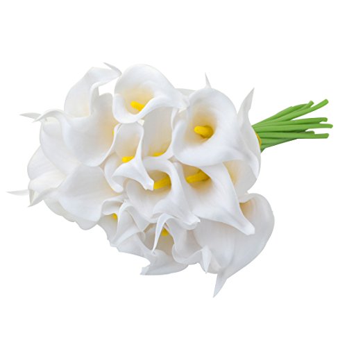 20PCS Calla Lily Bridal Wedding Bouquet, obmwang Artificial Floral Fragrance Latex Real Touch for Home Party Decor