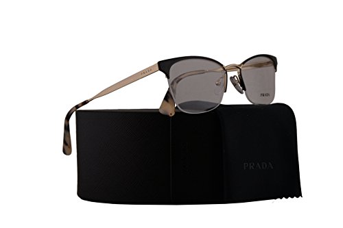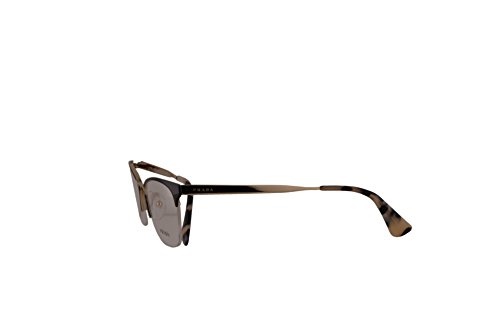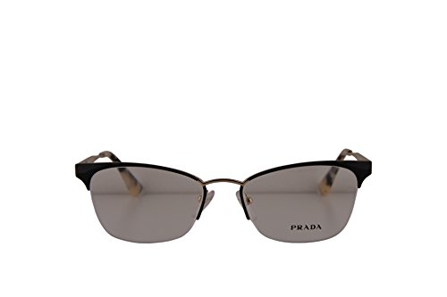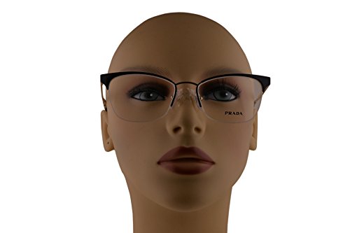 Product Description Prada PR 65QV Cinema eyeglasses are a lacquered metal cat-eye shape frame; available in an array of gorgeous colors to personalize your look Since 1979 when Miuccia Prada took the reigns of this longstanding Italian luxury brand, Prada has become shorthand for artistic and refined style. For women Semi-rimless frame made from corrosion resistant Monel, a metal alloy with a copper and nickel base. Adjustable silicone nose pads for a custom fit Prada logo etched onto the temples Plastic coated temple tips for comfort behind the ear. 0