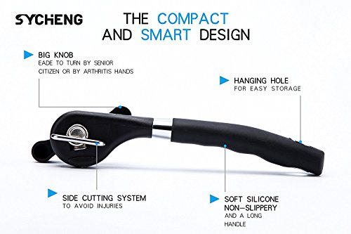 SYCHENG Safety Manual Can Opener, Upgrade Design 2017 New ,Stainless Steel Ergonomic Anti Slip,Side Cut Can Opener,Never Touch Food