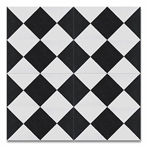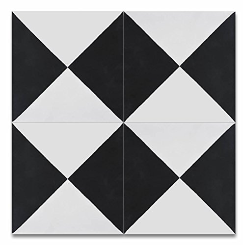 Moroccan Mosaic & Tile House CTP71-01 AnfaCTP71-01 Anfa 8’’x8’’ Handmade Cement Tile (Pack of 12), Black White