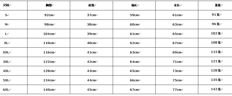Size S M L XL 2XL 3XL 4XL 5XL 6XL