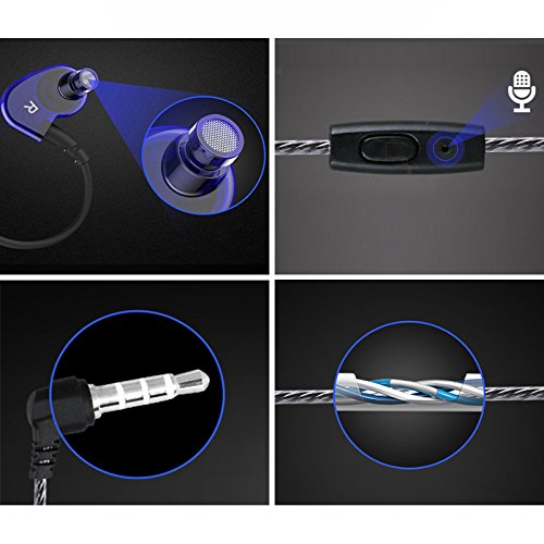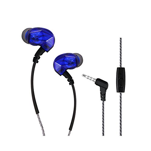 Huluwa Earphones In-Ear Sports Headphones, Heavy Bass Sweatproof Flexible Earhook Headsets with Mic (Blue)