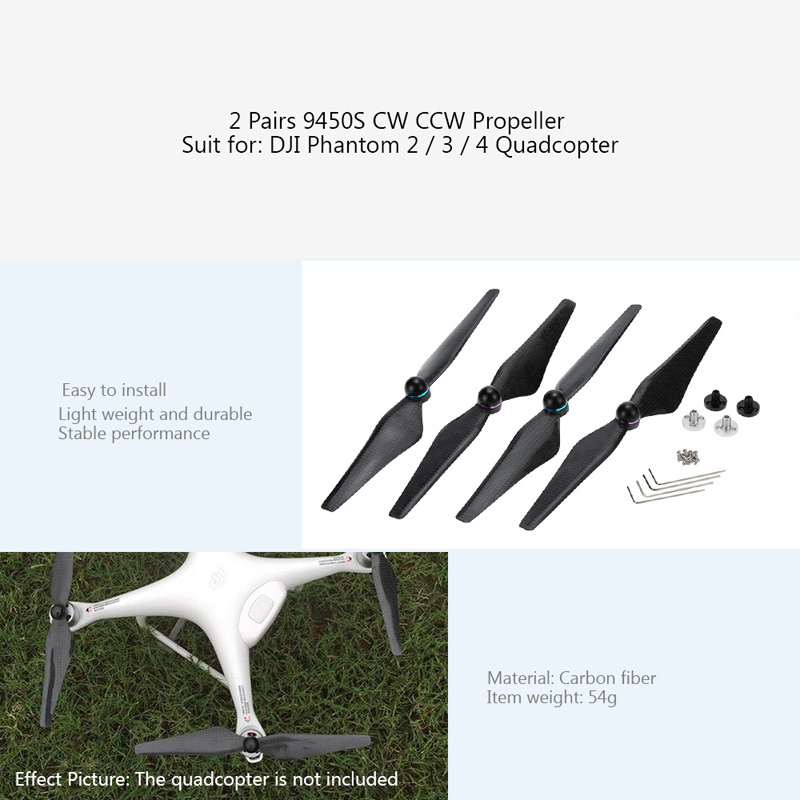 This high quality propeller set is just designed for RC super fans. It's compatible with DJI Phantom 2 / 3 / 4 RC quadcopter. Good choice for you to enjoy more flying joys.