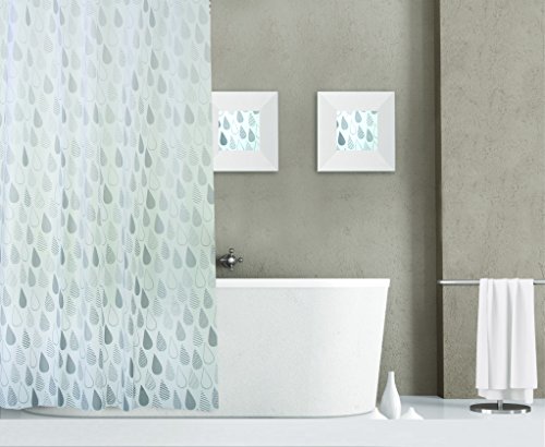 Dainty Home 13-Piece Rain Drops Containing Shower Curtain and 12 Metal Hooks Set, Silver