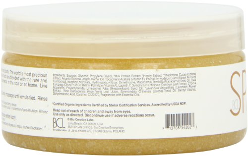 ReleaseDate : 2015-05-15 Studio : Bio Creative Lab Publisher : Bio Creative Lab Binding : Health and Beauty Product Description Hydrate and brighten your dull, tired skin with our new, but familiar, 4 step milk and honey with white chocolate spa system with certified organic ingredients. This luxurious sugar scrub is a gentle exfoliate for the hands, feet and body. 0