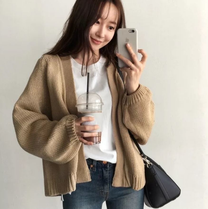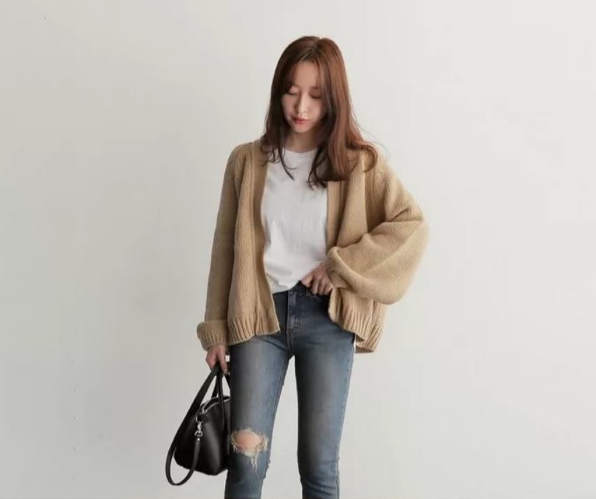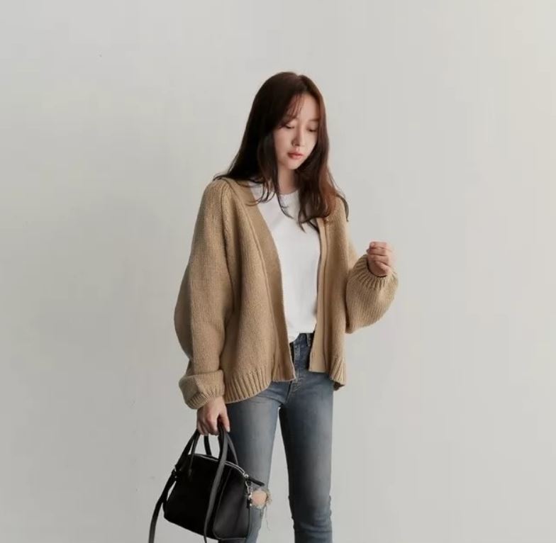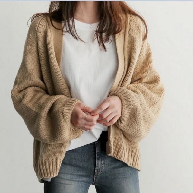ゆったりとした袖口が可愛いニットカーディガン♪