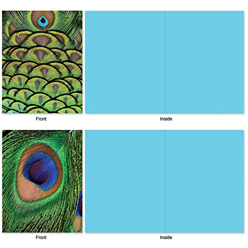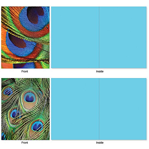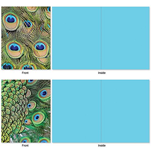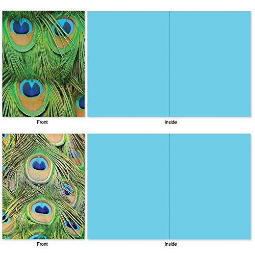 Who doesn't love beautiful peacock feathers and who doesn't love to receive a handwritten note? Why not combine the two and send someone a note written on these Blank Note Cards showing different images of a peacock's feathers. And because they are blank inside, you can also use them as party invitations and thank yous. These notecards look great framed, too! Try framing them individually, or grouping several in a collage frame, to create visually appealing wall decor.