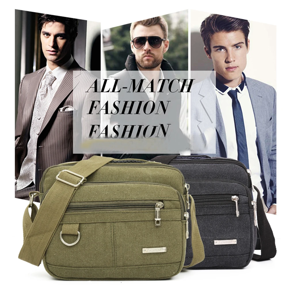 2017 New Fashion Men Canvas Messenger Bag Casual Multi-Pocket Shoulder Crossbody Bag