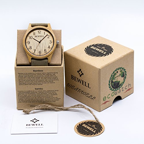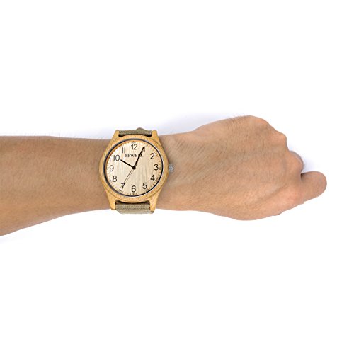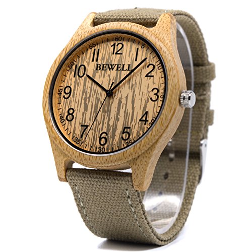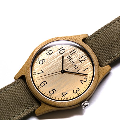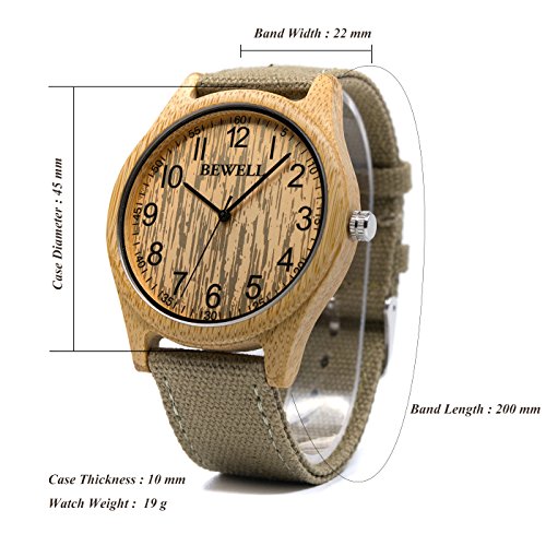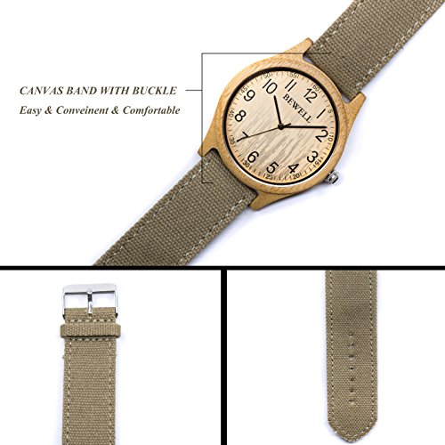 BEWELL Mens Wood Watches Quartz Analog Lightweight Canvas Band Casual Wooden Wristwatch W124B