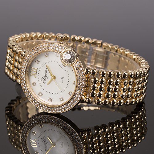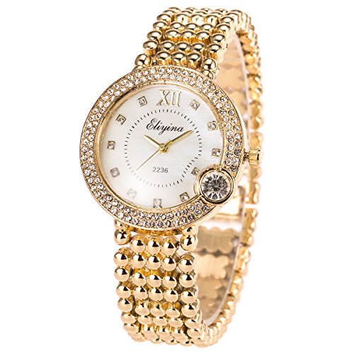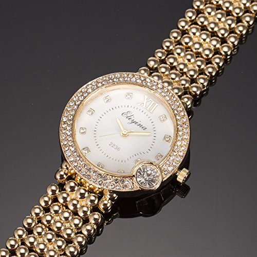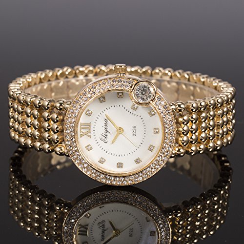 - 1.Gleaming Appearance - Beautiful Outstanding Good Looking - SIBOSUN Lady Women Quartz Luxury Gold Stainless Steel Band Bracelet Crystal Roman Numerals Wrist Watch. Perfect for Black Friday, Cyber Monday, Thanksgiving, Christmas, New Year and Valentine's Day Gift