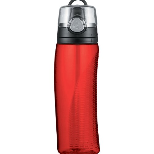 The Thermos Intak Hydration Bottle is made from BPA free, impact- resistant, dishwasher durable Eastman Tritan copolyester. It has a locking leak-proof lid with one-hand push button operation. There's a flip up loop for easy carrying; ergonomic design for comfortable usage. Monitor your intake with the rotating intake meter- perfect if you are trying to get those 8 glasses of water in everyday. Ideal for water, iced tea, juices and sports drinks: 24-ounce capacity.
