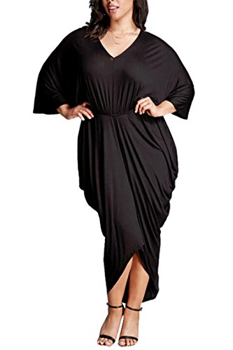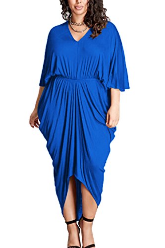 Women's Batwing Sleeve Hem High Low Maxi Ruched Dress Plus Size We have XL,XXL,XXXL size for the dress,size details as following: XL:Bust:44.09" Waist:37.01" Hip:46.85" Sleeve:26.77" Length:57.08"