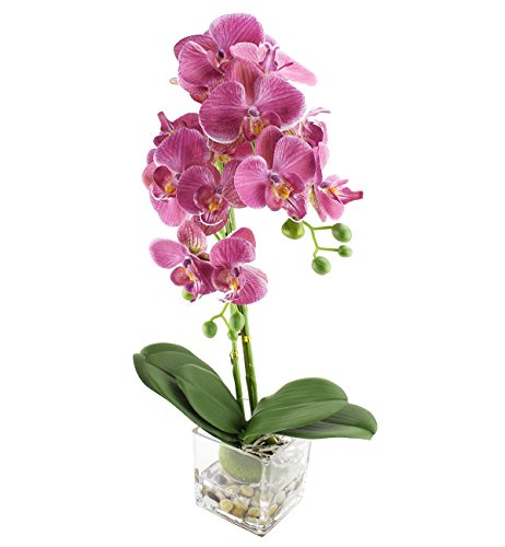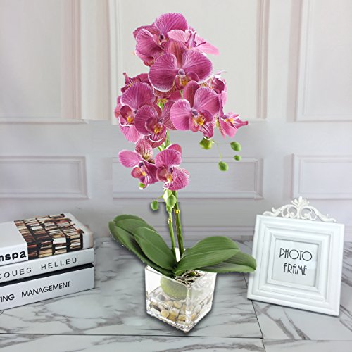 20"Tall Large Purple Artificial Flower Silk Orchid Arrangement with Square Glass Vase,12 Flower Heads Real Touch Realistic Artificial Flowers Bonsai Plant