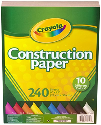 -. Binding : Toy -. Brand : Crayola -. EAN : 0069122387154 -. Feature : Lots of great colors of quality construction paper for many different kinds of school & craft projects! / Construction Paper is a must-have for all home and school project drawers / Mom's can now ensure best results when they pair Crayola paper with Crayola art materials, Standard 12' x 9" -. IsAdultProduct : 0 -. ItemPartNumber : 99-0013 -. Label : Binney & Smith -. Manufacturer : Binney & Smith -. Model : 99-0013 -. MPN : 99-0013 -. PackageQuantity : 1 -. PartNumber : 99-0013 -. ProductGroup : Toy -. ProductTypeName : TOYS_AND_GAMES -. Publisher : Binney & Smith -. ReleaseDate : 2014-09-01 -. Studio : Binney & Smith -. Title : Crayola Construction Paper, 240 Count, 2-Pack -. UPC : 071662990138 -. Warranty : No Warranty