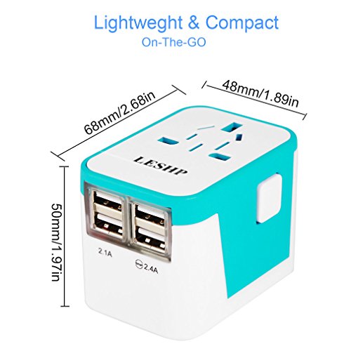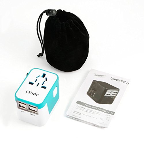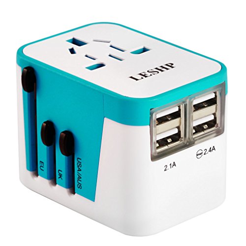 International Travel Power Adapter, Smart Wall Charger with All-in-one Universal Plug (US/JP UK EU AU/CN), 2.4A 4 USB Charging Port and Worldwide AC Socket/Surge Protector (Blue)