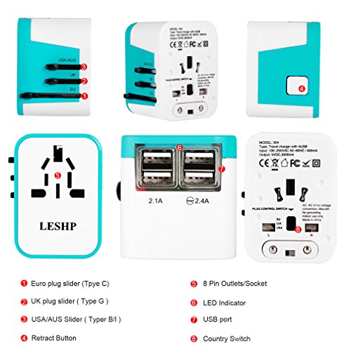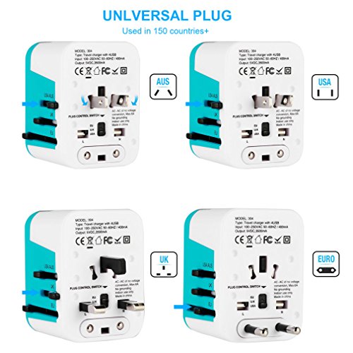 INTERNATIONAL COMPATIBILITY: Absolutely necessary travel Accessories for your worldwide traveling, Portable Universal Plug is used in over 150 countries, built with 2-pole unearthed retractable plugs include : USA, Japan (Type B), UK (Type G), Euro (Type C), Australia, China (Type I), Switch to the correct prongs type for your destination country, press the Release Button to retract the plugs when you stop use