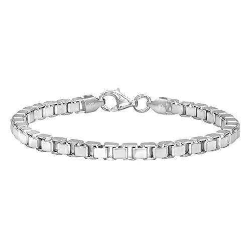 AUTHENTIC .925 STERLING SILVER - This 7 inch box anklet is 4.5mm wide (4.5mm thick) with a weight of 20 grams of pure sterling silver that fastens with a sturdy oval lobster clasp and features a Venetian chain with squared cubed links interlocking in an alternating pattern for a flexible drape