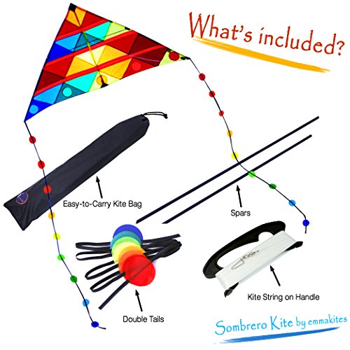 EMMAKITES SOMBRERO Delta Kite 60-inch Passionate Delightful - RTF Kit with Double Kite Tails & 320ft Kite String - Super Easy to Fly Kite for Beginners Kids Adults