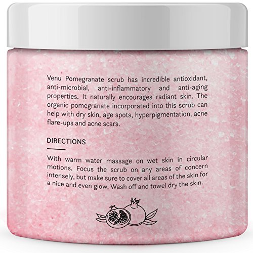 -. Title : Pomegranate Body Scrub - Daily Exfoliating Treatment to Brighten Skin - Anti-Aging, Anti-Microbial and Anti-Inflammatory Properties - For Varicose and Spider Veins and More - By Venu