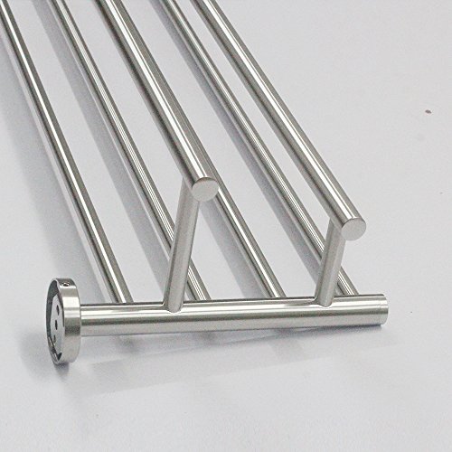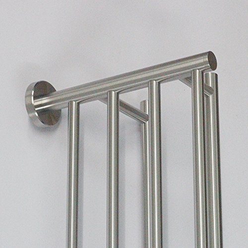 APPEARANCE - Our TOP OF THE LINE Shelf and Rack. QT Premium Modern Double Hanging Quadruple Towel Rack Bar with Round Base makes an excellent addition to any home or office bathroom. Its modern brushed stainless steel finish makes it both modern and clean looking. The mounting screws are hidden and out of sight.