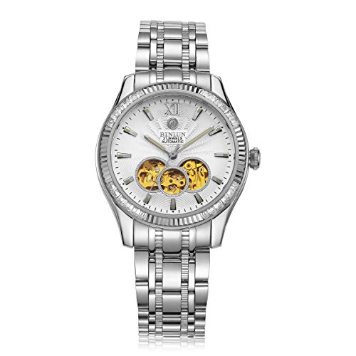 -. Title : BINLUN Men's 18k Gold Sliver Business Luxury Dress Watches Stainless Steel Tourbillon Automatic Watch