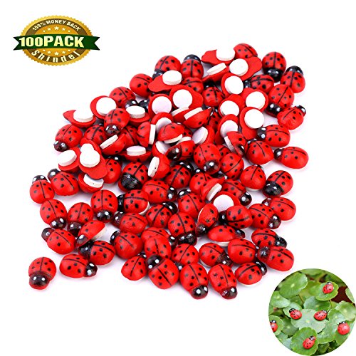 Mini Ladybugs, Self-Adhesive Ladybugs Wooden Ladybug Shaped Stickers Miniature for Fairy Garden Dollhouse Home Decor, 100 PCS