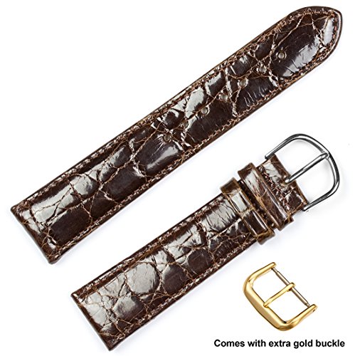 -. Title : deBeer brand Genuine Crocodile Watch Band (Silver & Gold Buckle) - Brown 19mm