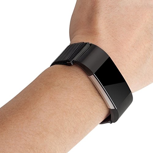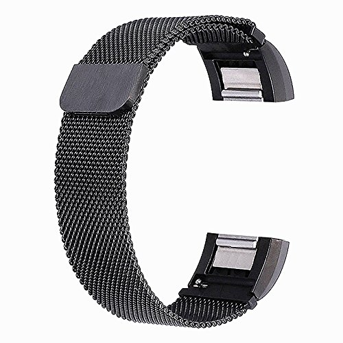 Fitbit Charge 2 Bands, Jisoncase Milanese Loop Stainless Steel Smart Watch Band with Secure Magnetic Closure for Fitbit Charge 2 HR Fitness Tracker - Black JS-FC2-03P10