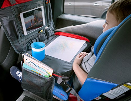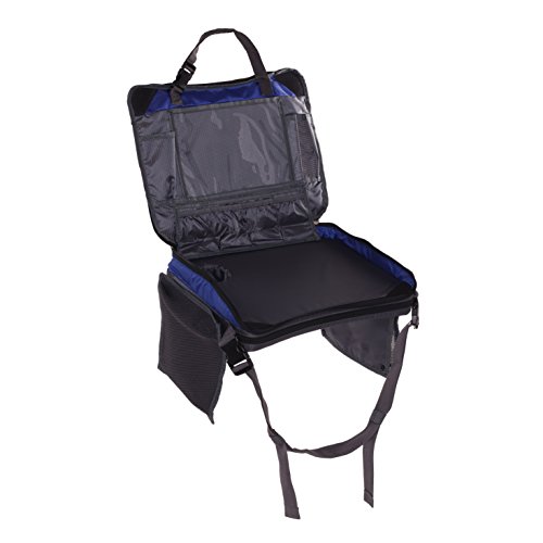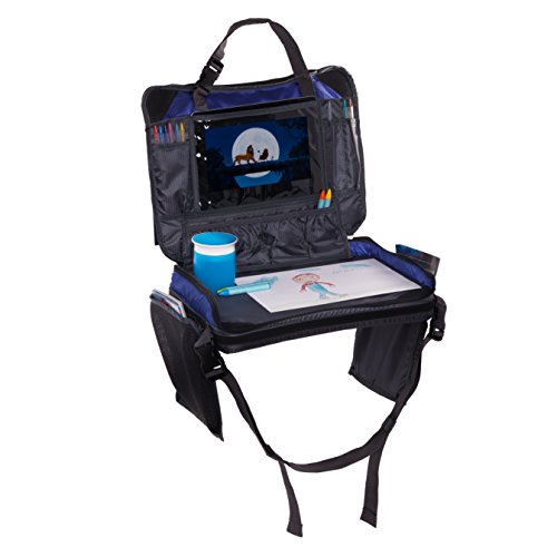 Kids Car Backseat Travel Organizer | Play 'N Tray | Lap Tray w/ Cup Holder | Mesh Pockets Tablet iPad Holder | Children's Snack Desk (Blue)