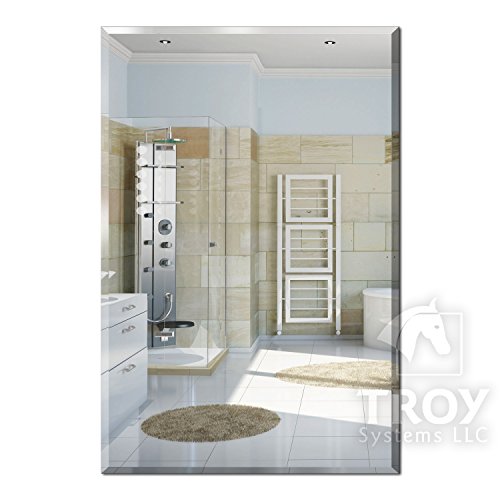 TroySys Beveled Polished Mirror with Hooks, 24" L x 36" W x 1/4" Thick, Rectangle