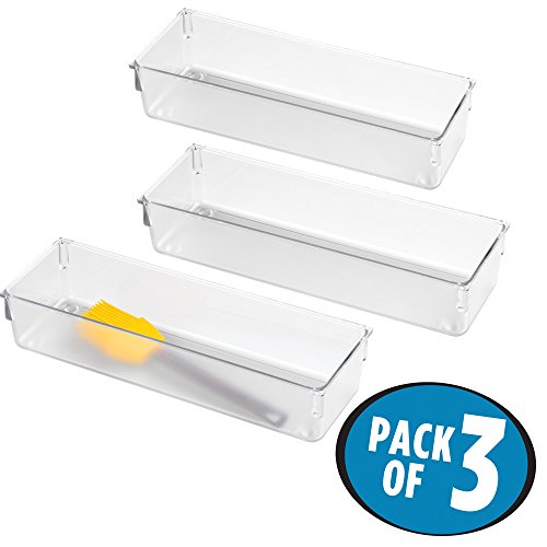 mDesign Kitchen Drawer Organizer for Silverware, Spatulas, Gadgets - Pack of 3, 3" x 9" x 2", Clear