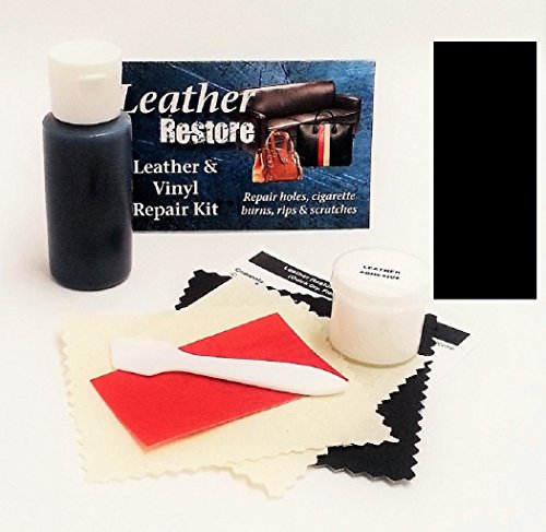 Leather goods are expensive, and you don’t want to pay even more money for replacement or for a professional service company. Save time and money and do it yourself with Leather Restore’s Leather Repair Kit! Easily repair cigarette burn holes in car upholstery, cat scratches on couch, cuts on saddle, cracked boots, ripped furniture and much more! Our Leather Repair Kit repairs all types of leather and is available in a large variety of colors. And best of all, no mixing and matching colors is needed since we have lots of colors available to you. The designed for leather adhesive and color compounds are made to blend well with surrounding materials. The results: a durable, strong and flexible leather like finish. Simply fix the damage, then re-color, and your restoration is as good as new. And best of all, no complicated and unsafe heat cure method here, our formula air dries fast! This is the #1 solution for restoring your leather goods! Leather Repair Kit includes: 1 bottle color compound (1 ounce), leather adhesive, sandpaper, backing fabric, vinyl test piece, spatula & complete easy to use directions. Made in USA. 100% Satisfaction Guaranteed!