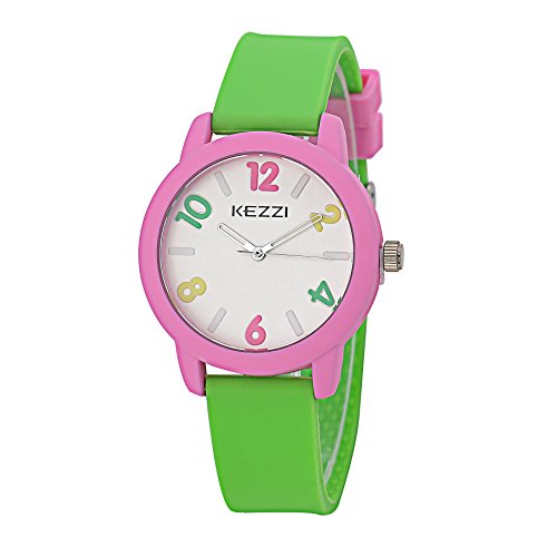 -. Binding : Watch -. Brand : Kezzi -. Department : girls -. EAN : 7426759364461 -. Feature : Imported / Japanese Quartz movement with analog display / Protective mineral crystal dial window / Features round pink metal dial and green silicone band ,imported IP plated zinc alloy case, and buckle closure -. Label : Kezzi -. Manufacturer : Kezzi -. Model : K1256 -. MPN : K1256 -. PackageQuantity : 1 -. PartNumber : K1256 -. ProductGroup : Watch -. ProductTypeName : WATCH -. Publisher : Kezzi -. Studio : Kezzi -. Title : Kezzi Girl Kid Green Silicone Band Wristwatch with Japan Movement