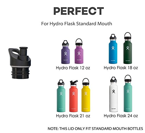 SIZE: Fits all standard mouth Hydro flask water bottles, includes 12, 16, 18, 21, & 24 ounce water bottles . Universal size lid for TOPOKO 25 oz double wall vacuum bottle and Hydro Flask standard mouth(1.8 inches in diameter) Bottles.