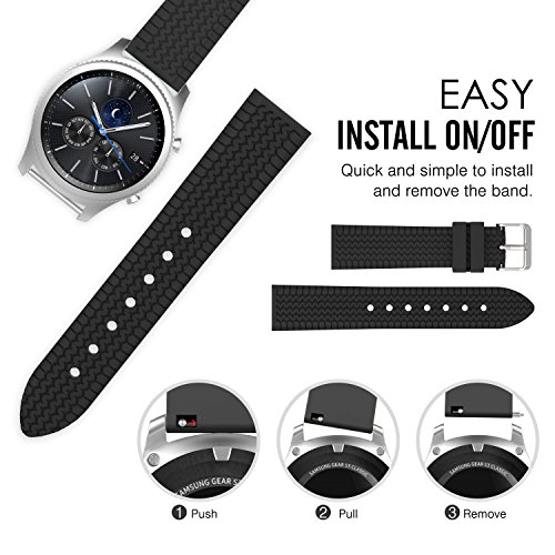 Gear S3 Frontier / Classic Watch Band, MoKo Soft Silicone Replacement Sport Strap for Samsung Gear S3 Frontier / S3 Classic Smart Watch, NOT FIT S2 & S2 Classic Watch, NOT FIT Gear Fit2 Watch, BLACK