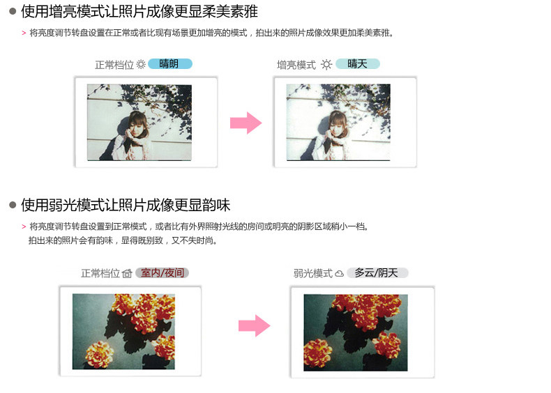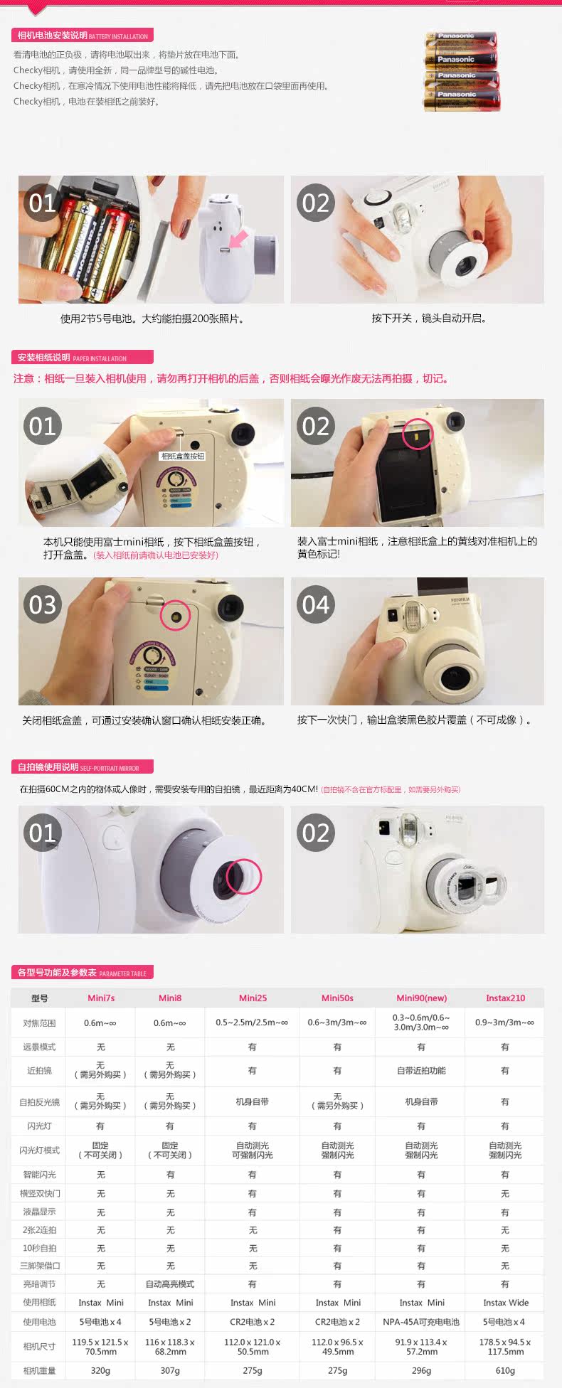 PS:拍出的第一张是相纸的保护壳不成像,在此之后直到计数显示0,不能打开相机后盖,否则会曝光。